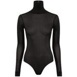 black logo patch to the rear signature four-stitch logo roll neck long sleeves fitted silhouette Just a reminder that this piece must be tried on over your own garments. High-neck bodysuit Size and Fit - This piece fits true to size. We recommend you get your regular size. Model is 1,75m / 5ft 8in wearing size 40 (IT)