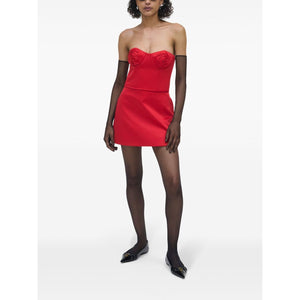 bright red satin finish balconette style faux-rose detailing rear hook and eye fastening boned bodice strapless cropped Rose satin corset Size and Fit - This piece fits true to size. We recommend you get your regular size. Model is 1,75m / 5ft 8in wearing size 4 (US)