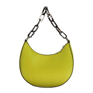 Elevate your accessory game with the striking Mario Valentino handbag, an epitome of glitzy sophistication. Its vibrant yellow hue promises to turn heads, while the removable chain shoulder handle and adjustable strap offer versatile styling options. Crafted with care, this chic number surprises with ample storage, featuring two internal pockets and a secure zip closure. The emblematic logo adds that signature luxury finish, making it a must-have for the daring fashionista.