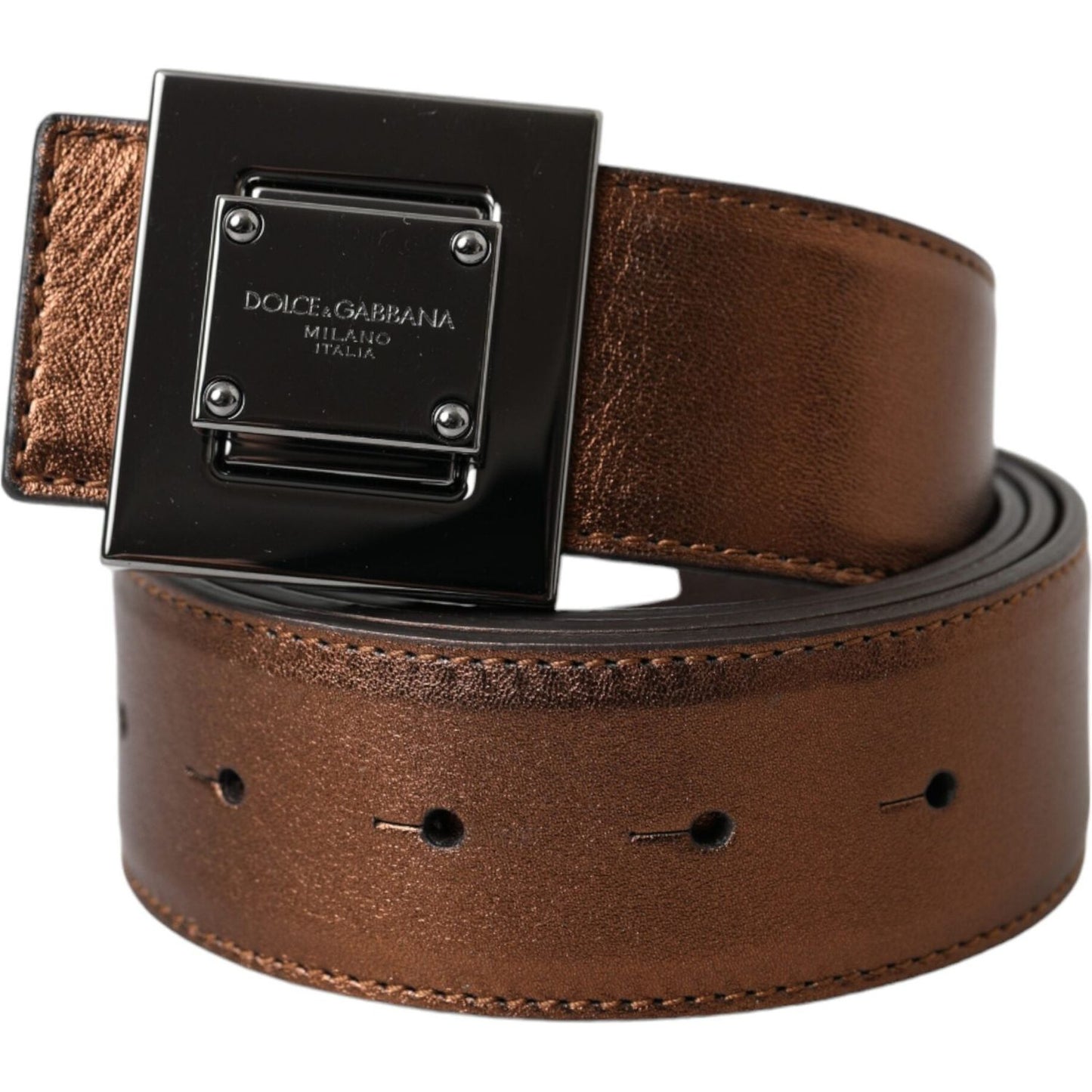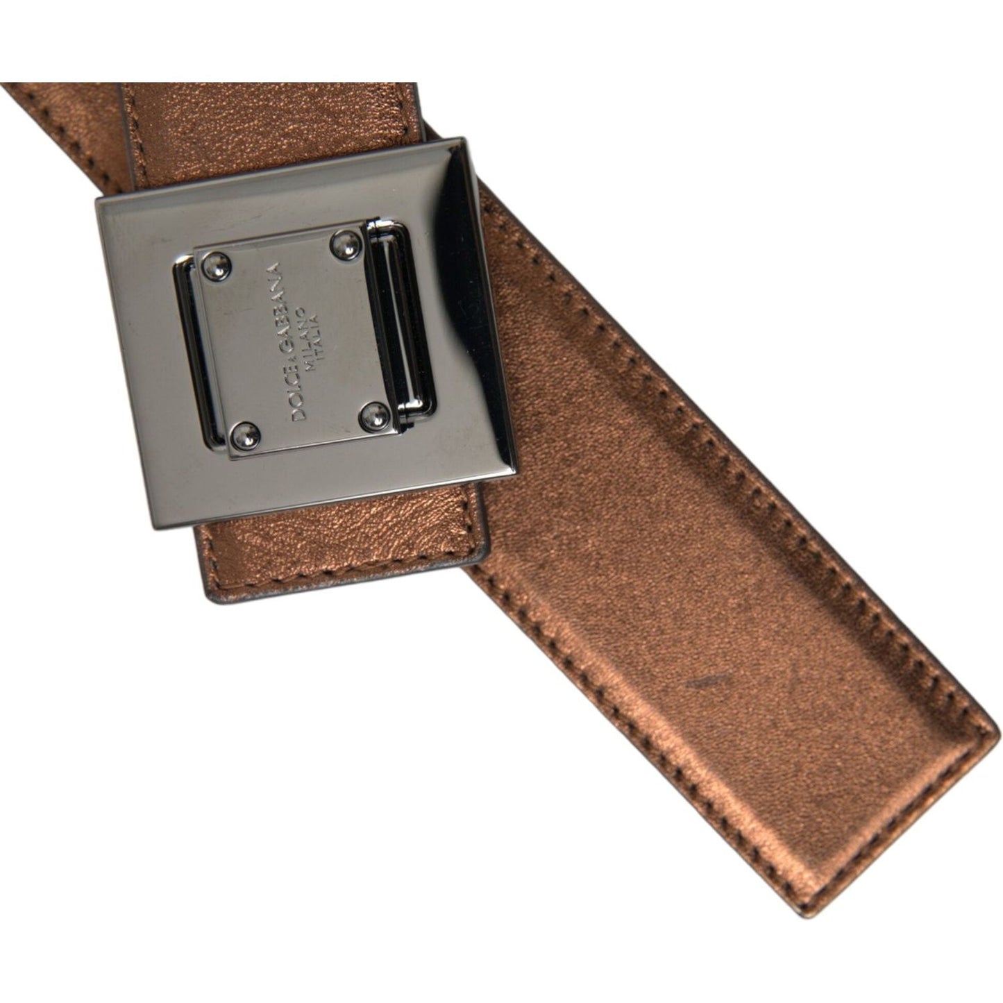 Dolce & Gabbana Metallic Bronze Leather Square Metal Buckle Belt