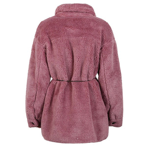 Pink coat, closure with buttons, two fake pockets at the top, waist belt, two low pockets, long sleeves, shirt -style collar. Faux fur coat Size and Fit - This piece fits true to size. We recommend you get your regular size. Model is 1,75m / 5ft 8in wearing size S