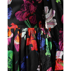 MSGM Dress Black Multicolor Floral Ruffle Long Sleeve Mini Dress