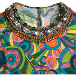 Dolce & Gabbana Multicolor Geometric Print Silk Crystals Midi Dress