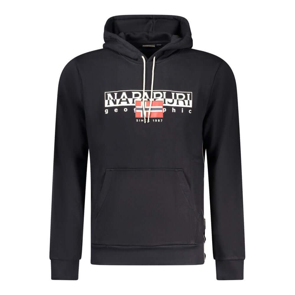 Elevate your casual style with the Napapijri long-sleeved hoodie, a testament to refined comfort and dynamic design. This regular-fit sweatshirt boasts a sleek black hue accented by contrasting details and the iconic Napapijri logo, making a bold statement. Perfect for the modern trendsetter, the central pocket adds a practical touch to this must-have piece. Crafted from a perfect blend of cotton and polyester, it promises durability and coziness in any setting.