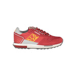 Dare to stand out in Napapijri’s vibrant fusion of functionality and fashion-forward design. These sports shoes command attention, designed with bold red hues, dynamically contrasted with sharp detailing. The inclusion of a second set of contrasting laces allows for a quick style change to match your mood or outfit. Stamped with the iconic Napapijri logo, these sneakers are more than just footwear—they’re a statement. Eco-conscious and crafted with a mix of Polyester and Polyethylene, tread the streets with confidence and conscience.
