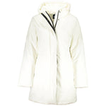 long-sleeved jacket with hood, 2 external pockets, 1 internal pocket, zip and buttons, application, logo