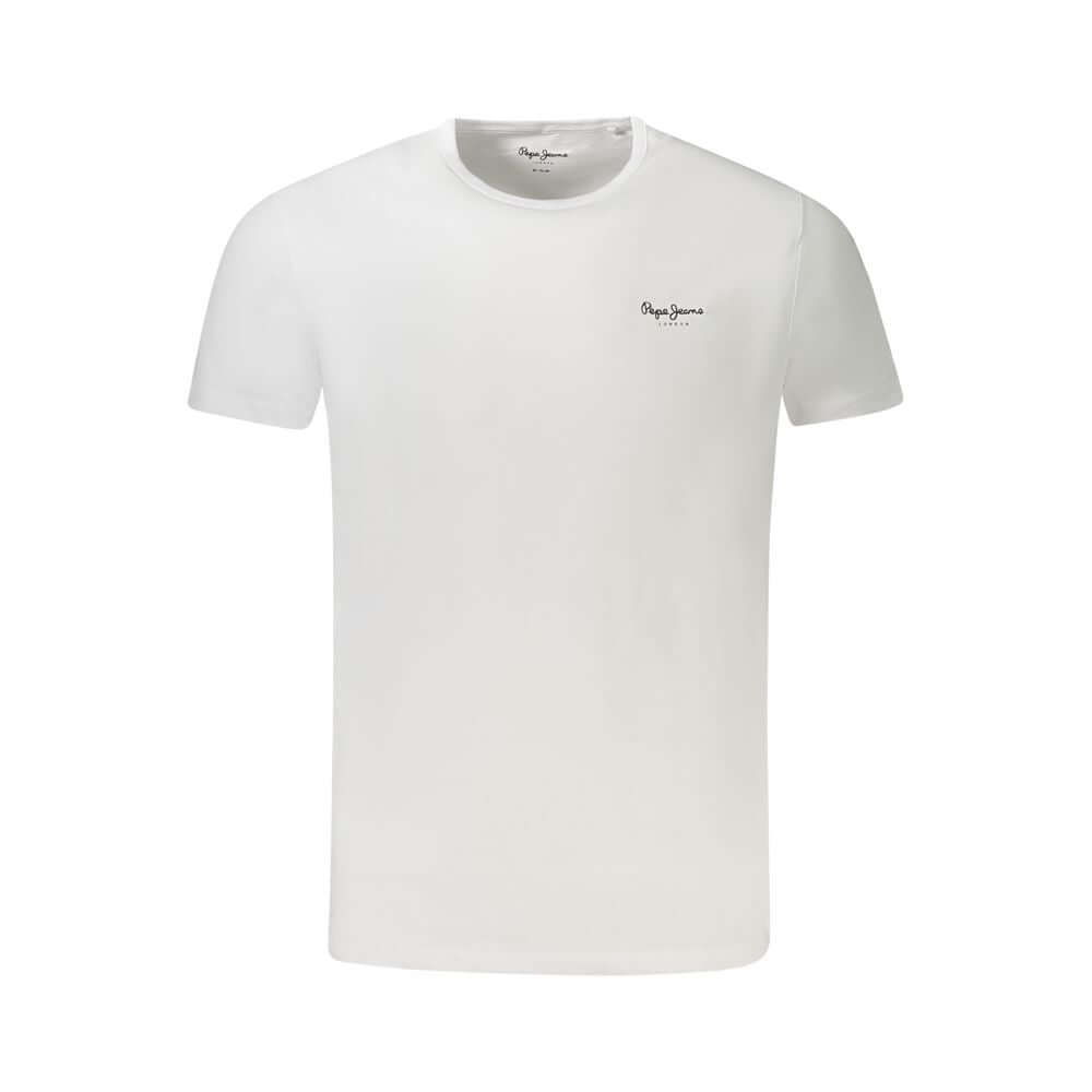 Elevate your wardrobe with this crisp, white Pepe Jeans tee, a seamless blend of sustainability and style. Boasting a slim fit that contours gracefully to your form, this T-shirt features a bold crew neck, short sleeves, and an eye-catching print complemented by the iconic Pepe Jeans logo. Crafted from a premium blend of 95% cotton and 5% elastane, it promises both comfort and durability. Perfect for the fashion-forward individual ready to make a statement. Be confident, be trendy, be you with Pepe Jeans.