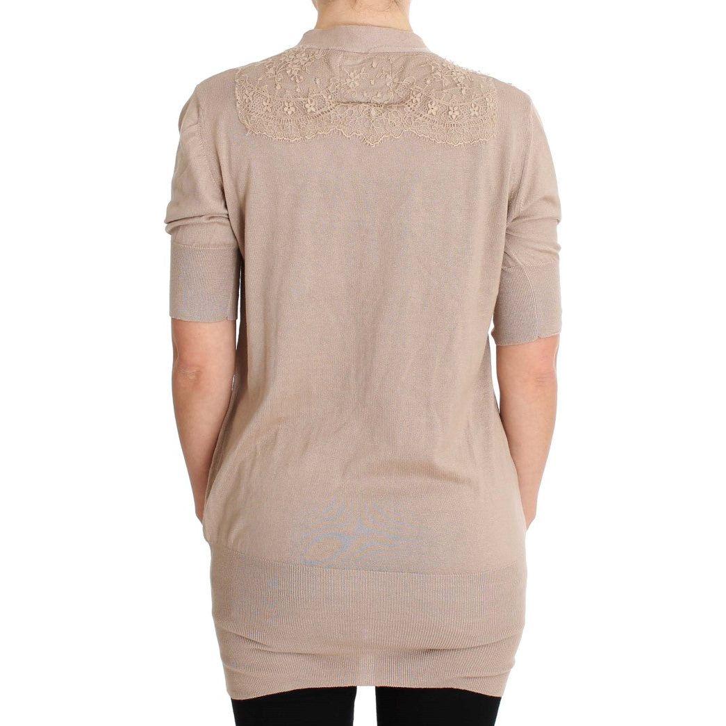 PINK MEMORIES Pink Lace Cotton Cardigan Sweater