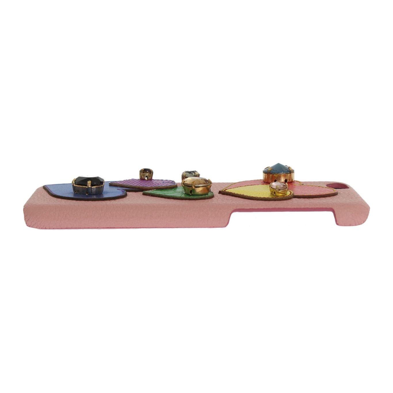 Dolce & Gabbana Pink Leather Heart Crystal Phone Case