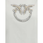 Pinko’s T-Shirt is distinguished by the embroidered logo on the front, enriched with rhinestones and pearls that give the garment a touch of brightness and elegance, perfect for a refined and feminine look.