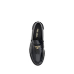 Prada’s Leather Loafers are a mix of classic elegance and distinctive details. The slightly elongated round toe and leather block heel ensure comfort and style. The iconic enameled triangular plaque with the brand’s signature applied to the front adds a touch of recognition, while the logo-embossed insole completes the design. Perfect for a sophisticated yet versatile look, these loafers are ideal for those seeking quality and timeless style.