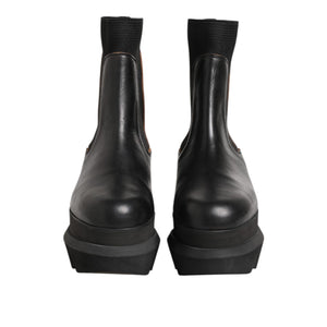 Sacai Black Chelsea Leather Pull On Women Ankle Boots Shoes
