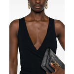 black stretch-design ruched detailing V-neck sleeveless above-knee length V-necked sleelvess dress Size and Fit - This piece fits true to size. We recommend you get your regular size. Model is 1,75m / 5ft 8in wearing size 36 (FR)