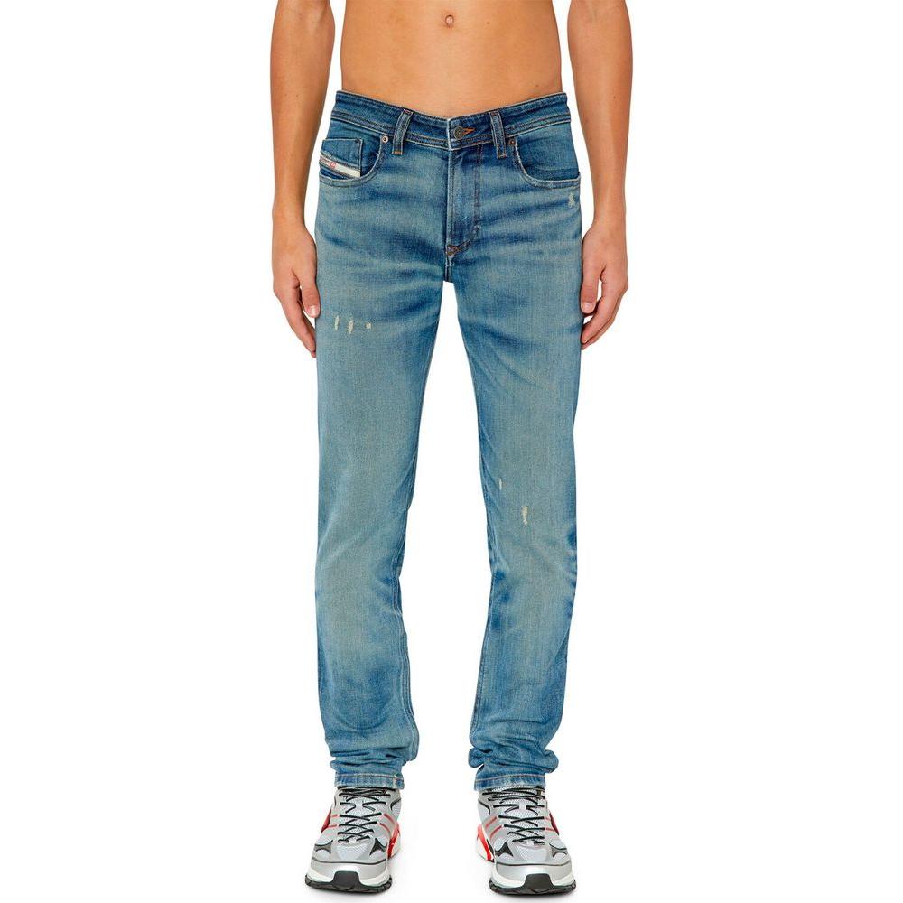 Crafted for those who dare to stand out, these Diesel skinny jeans embody the essence of punk-rock spirit, while delivering a refined fit. A low waist meets a snug leg, from thigh to ankle, showcasing visible shaded and distressed details for an edgy, yet sophisticated look. The stretch-denim fabric in a captivating medium blue ensures both style and comfort. Perfect for the modern trendsetter looking to inject boldness into their wardrobe.