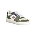 Elevate your sneaker game with the latest from Tommy Hilfiger. These sporty kicks come alive with contrasting blue and white hues, accented by the iconic logo for an unmistakable statement. Crafted from a durable blend of polyester, leather, and polyethylene, these shoes promise comfort and longevity while keeping you on-trend. Perfect for the stylish gentleman ready to make an impression every step of the way.