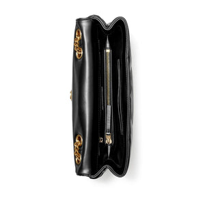 black nappa leather diamond quilting signature Double T motif sliding chain-link shoulder strap gold-tone hardware foldover top with magnetic fastening partitioned compartment internal zip-fastening pocket Kira Diamond leather shoulder bag Size and Fit - Width 10,83 in / 27,5 cm Height 7,48 in / 19 cm Depth 3,15 in / 8 cm Strap 23,23 in / 59 cm