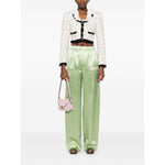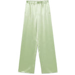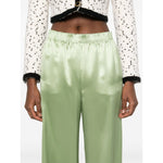 avocado green elasticated waistband two side welt pockets Silk wide-leg trousers Size and Fit - This piece fits true to size. We recommend you get your regular size. Model is 1,75m / 5ft 8in wearing size 40 (IT)