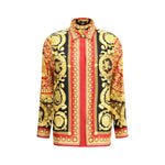 Versace’s Pure Silk Shirt is a luxury garment with distinctive character, embellished with the iconic Barocco print that decorates the entire surface. The short point collar and concealed button closure enhance the sophistication of the design, while the angular button cuffs add an elegant sartorial touch.