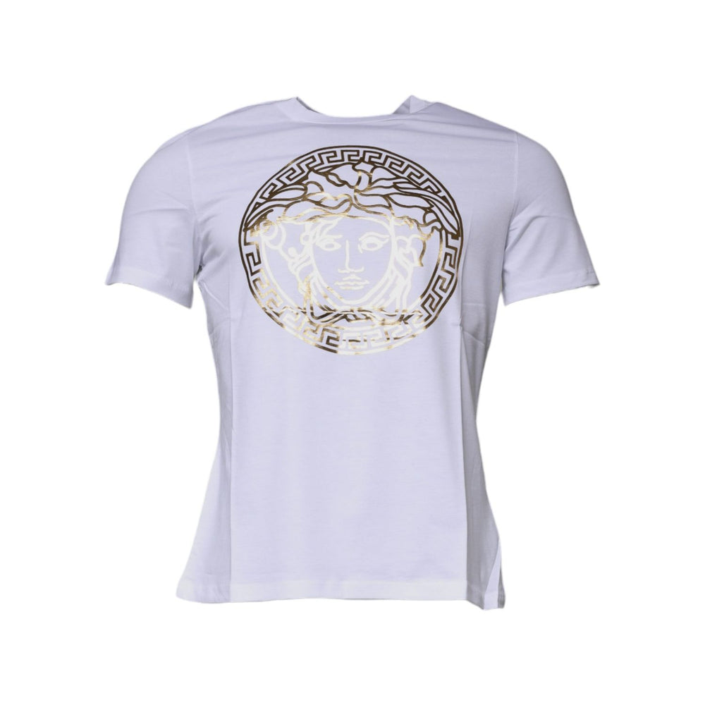 Versace White Medusa Print Cotton Crew Neck T-shirt