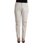 PINKO White Cotton Distressed Mid Waist Skinny Denim Jeans