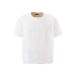 Emporio Armani Over Tunic Sweater in white with beige interior, round neck, wide short sleeve, fastening at neck with hidden snaps, small slits on side, rubber logo applied on back. Composition: 100% Cotton-Sku inside:23MG138-142