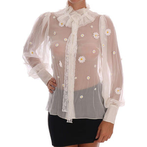 Gorgeous brand new with tags, 100% Authentic DOLCE & GABBANA white with daisy applique silk shirt blouse.