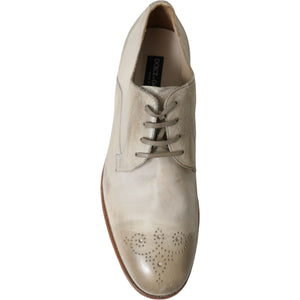 Dolce & Gabbana White Distressed Leather Derby Dress Shoes