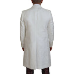 Dolce & Gabbana White Floral Brocade Trench Coat Jacket