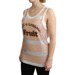 Dolce & Gabbana White Orange Crystal Sleeveless Tank Cotton Top