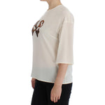 Dolce & Gabbana White Sequined Key Silk Blouse T-shirt Top