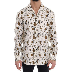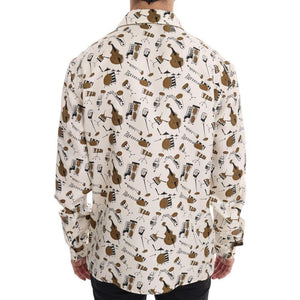 Dolce & Gabbana White Silk JAZZ Motive Print Shirt