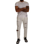 Dolce & Gabbana White Tattered Skinny Cotton Men Denim Jeans