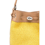 canary yellow concealed magnetic fastening single top handle adjustable detachable shoulder strap This piece comes complete with a protective dust bag. Mondà Vimini small bucket bag Size and Fit - Width 9,06 in / 23 cm
