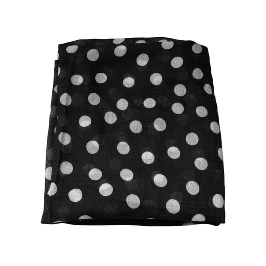 Dolce & Gabbana Black White Polka Dots Fringes Wrap Scarf