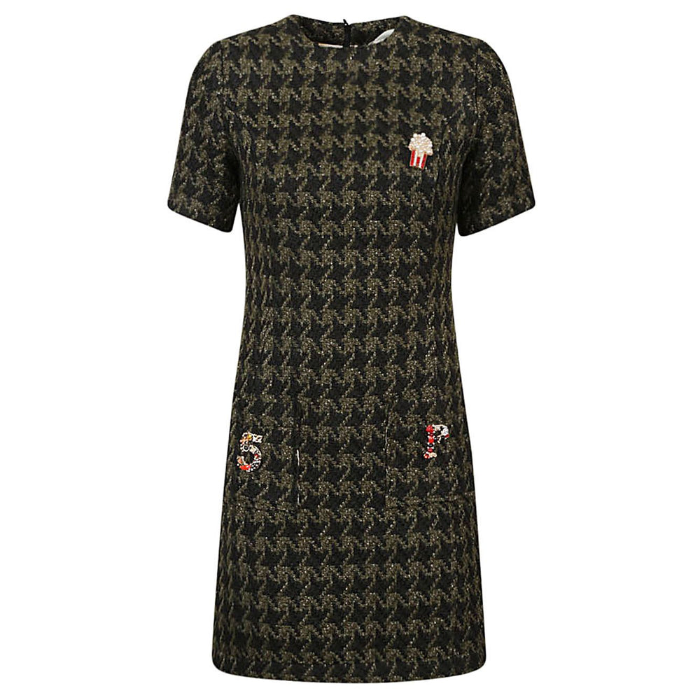 Short green dress, short sleeves, hidden zip closure, crewing, two in front pockets. Houndstooth wool blend short dress Size and Fit - This piece fits true to size. We recommend you get your regular size. Model is 1,75m / 5ft 8in wearing size S