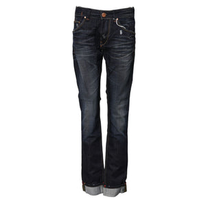 Acht Blue Washed Cotton Mid Waist Flared Denim Jeans