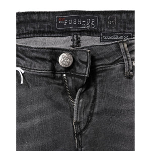 Acht Dark Gray Cotton Slim Fit Denim Low Waist Denim Jeans