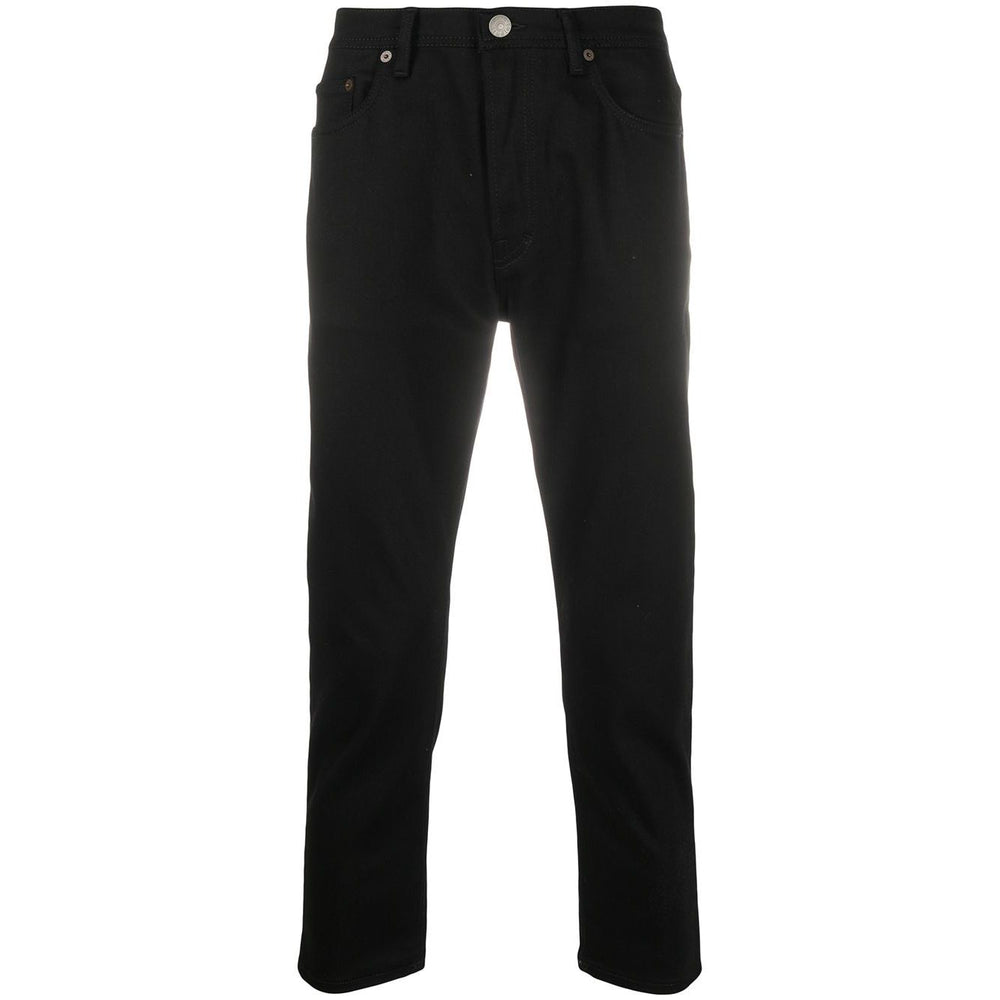 River slim-fit jeans from ACNE STUDIOS featuring black, organic cotton blend, logo patch to the rear, belt loops, mid-rise, front button and zip fastening, straight leg, cropped and classic five pockets. POSITIVELY CONSCIOUS: This Planet Conscious product is made from at least 50% organic materials, which helps you support organic farming practices such as the restricted use of synthetic chemicals and genetically modified seeds, improved soil fertility and better livestock management.. Denim cotton jeans Size and Fit - This piece fits true to size. We recommend you get your regular size. Model is 1,84m / 6ft 1in wearing size 32 (WAIST CM)