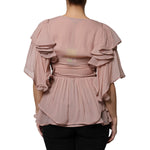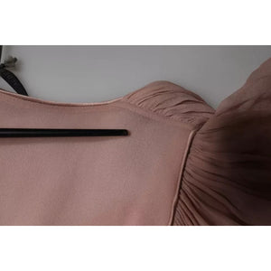 Alberta Ferretti Brown Silk Short Sleeves V-neck Pleated Top