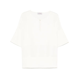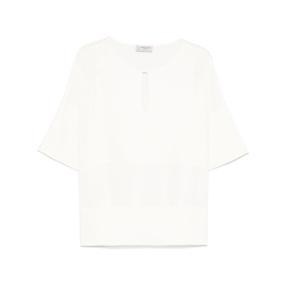 short side slits Cady blouse Size and Fit - This piece fits true to size. We recommend you get your regular size. Model is 1,75m / 5ft 8in wearing size 40 (IT)
