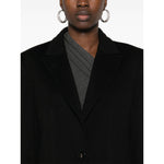 black virgin wool front button fastening peak lapels shoulder pads long sleeves buttoned cuffs chest welt pocket two side flap pockets central rear vent logo-jacquard lining straight hem mid-length Wool single-breasted coat Size and Fit - This piece fits true to size. We recommend you get your regular size. Model is 1,75m / 5ft 8in wearing size 40 (IT)
