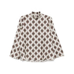 white/multicolour silk satin weave floral print mock neck long sleeves side slits straight hem Printed silk blouse Size and Fit - This piece fits true to size. We recommend you get your regular size. Model is 1,75m / 5ft 8in wearing size 40 (IT)