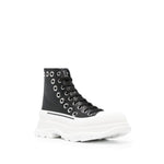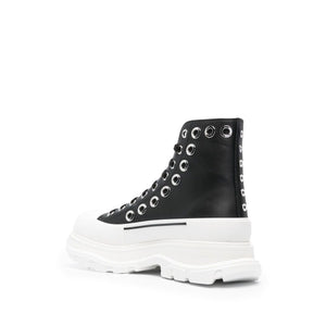 Nero/bianco, pelle di vitello, dettaglio con occhiello metallico, linguetta con logo stampato, logo laterale goffrato, punta a contrasto, chiusura frontale con lacci, suola chunky in gomma e altezza alla caviglia. Tread Slick ankle boots Size and Fit - Heel 1,9 in / 4,8 cm; Platform 1,4 in / 3,6 cm
