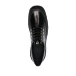 chunky-sole derby shoes from Alexander McQueen featuring black, calf leather, silver-tone hardware, round toe, front lace-up fastening, branded insole and chunky rubber sole. Tread Slick leather brogues Size and Fit - Heel 1,8 in / 4,5 cm; Platform 1,2 in / 3 cm