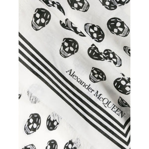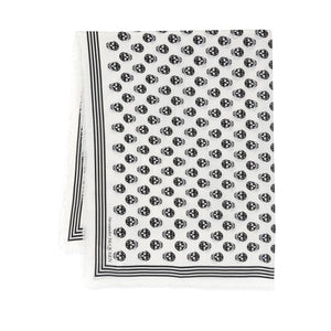 Wool, printing with skull, two -tone design, printing with the soror logo and finished edge. Skull wool scarf