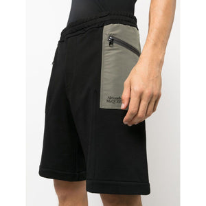 two-tone elasticated track shorts from Alexander McQueen featuring jet black, olive green, cotton, two-tone design, logo print to the front, elasticated waistband, two side zip-fastening pockets, straight leg and knee-length. Organic cotton shorts Size and Fit - This piece fits true to size. We recommend you get your regular size. Model is 1,84m / 6ft 1in wearing size M