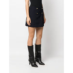 wool-cotton blend mini wrap skirt from Alexander McQueen featuring navy blue, wool-cotton blend, twill weave, wrap design, embossed gold-tone buttons, high waist, front button fastening, straight hem and thigh-length. Wool mini skirt Size and Fit - This piece fits true to size. We recommend you get your regular size. Model is 1,75m / 5ft 8in wearing size 40 (IT)