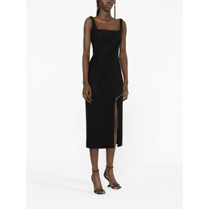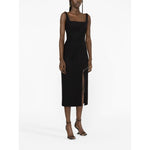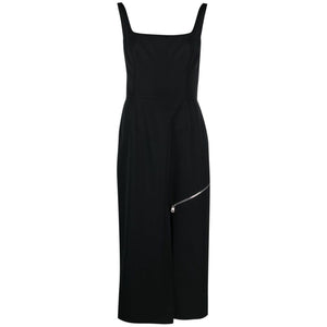 zip-embellished midi dress from Alexander McQueen featuring black, wool, decorative zip detailing, square neck, concealed rear zip fastening, sleeveless, side slit and mid-length. Grain de poudre wool midi dress Size and Fit - This piece fits true to size. We recommend you get your regular size. Model is 1,75m / 5ft 8in wearing size 40 (IT)