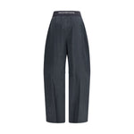 The Alexander Wang Cotton Trousers feature knee pleats and a contrasting jacquard logo elastic waistband. Designed with pockets, trompe-l’œil detailing, and a wide leg, they combine comfort and contemporary style with a distinctive touch