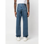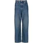 high-rise loose-fit jeans from AMBUSH featuring ocean blue, cotton, dark wash, logo patch to the rear, belt loops, high-waisted, wide leg, front button fastening and classic five pockets. Regular fit denim jeans Size and Fit - This piece fits true to size. We recommend you get your regular size. Model is 1,84m / 6ft 1in wearing size 32 (WAIST CM)